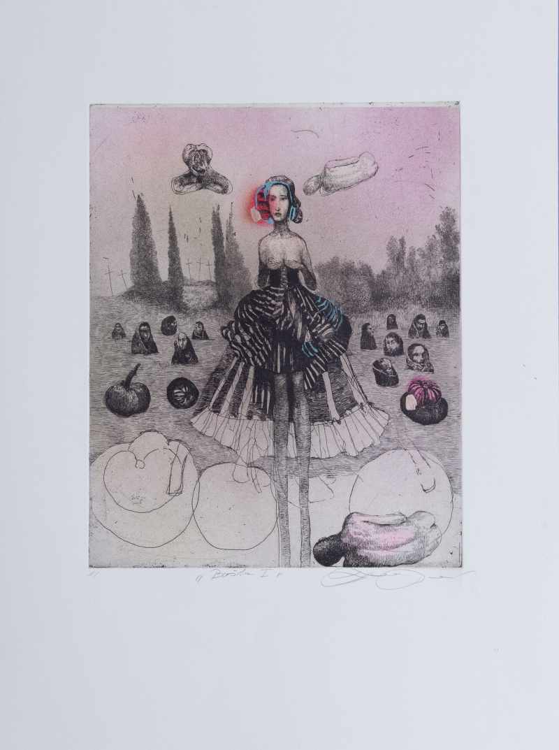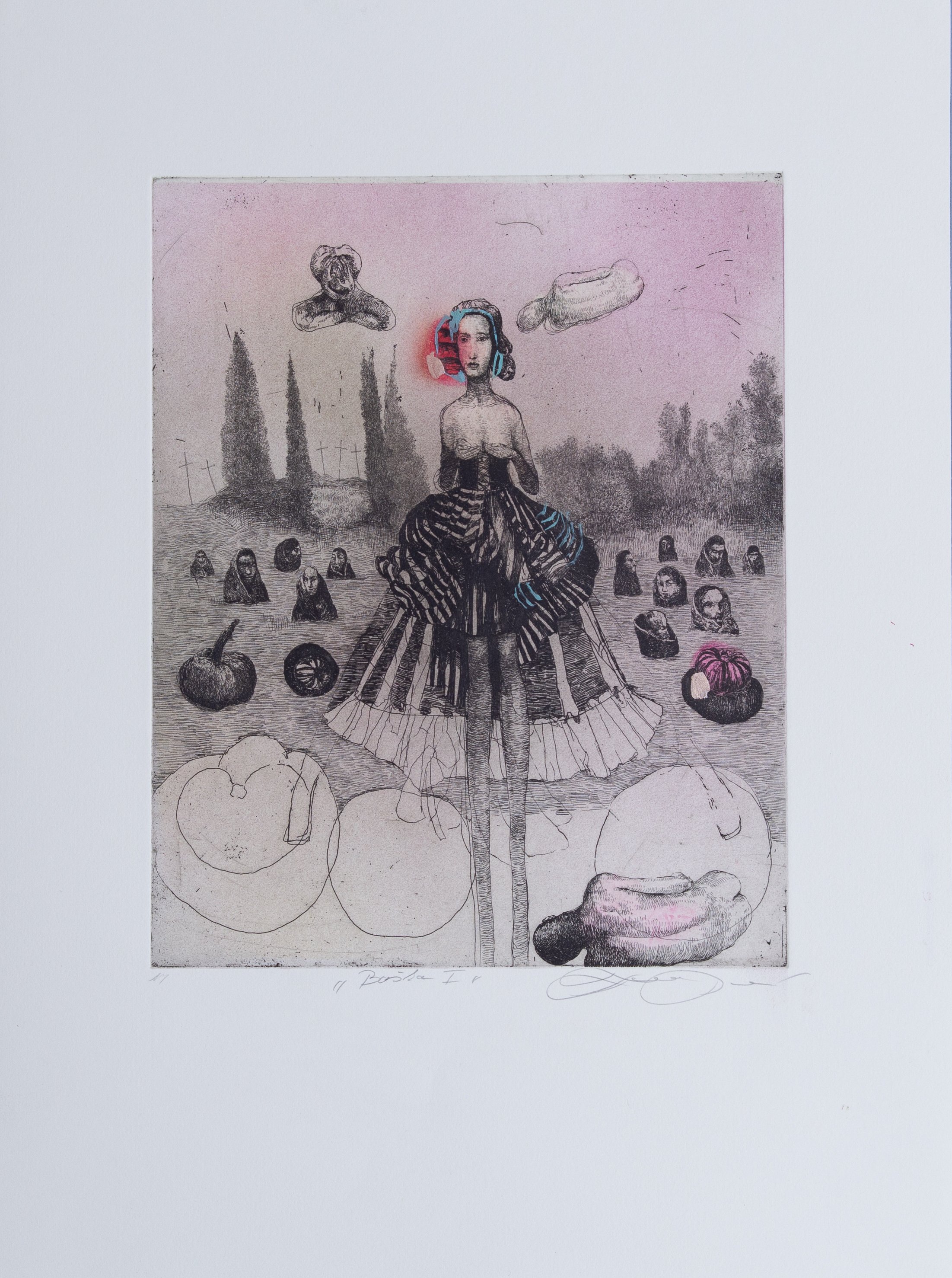 Lept, mezzotinta, ručné kolorovanie na papieri